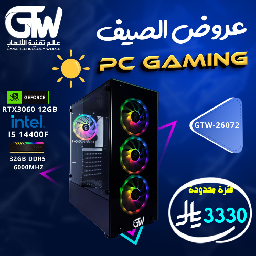 تجميعة بيسي قيمنق لون اسود RTX 3060 12GB - I5 14400F - 32GB DDR5 - 1TB M.2