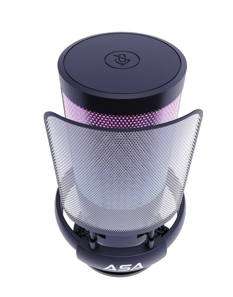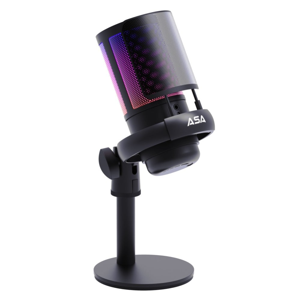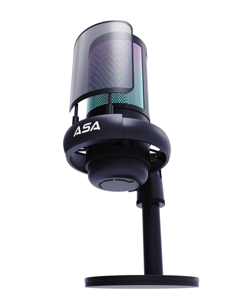 مايك قيمنق احترافي سكواد كاست من ASA بلون اسود وفلتر لتقليل الضوضاء مع اضاءة RGB