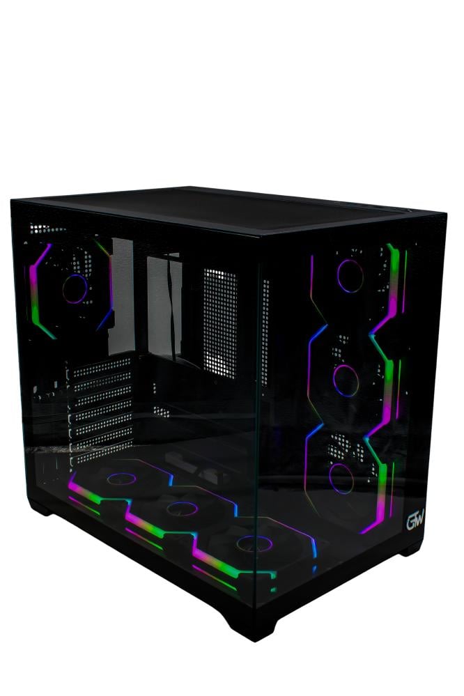 GTW GAMING COMPUTER CASE, BLACK MID TOWER ATX CASE WITH 7 PRE-INSTALLED RGB FANS GT-F7CB009