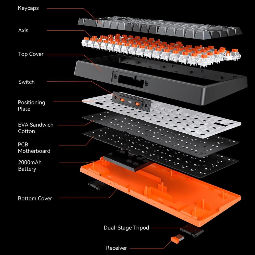 مع تصميم Top-Mount وحشوة EVA المدمجة، ستستمتع بتجربة كتابة نقية، دون أي تشويش أو ضوضاء غير مرغوب فيها. 🖋️🔇