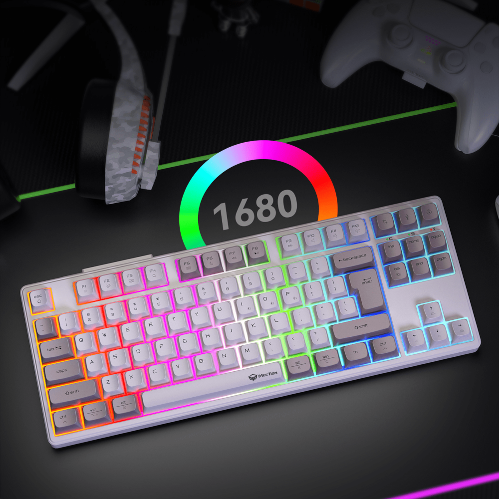 ✨ لوحة مفاتيح ميكانيكية Meetion MT-MK14 TKL باللون الأبيض مع إضاءة RGB قابلة للتخصيص واتصال متعدد الأنظمة ✨